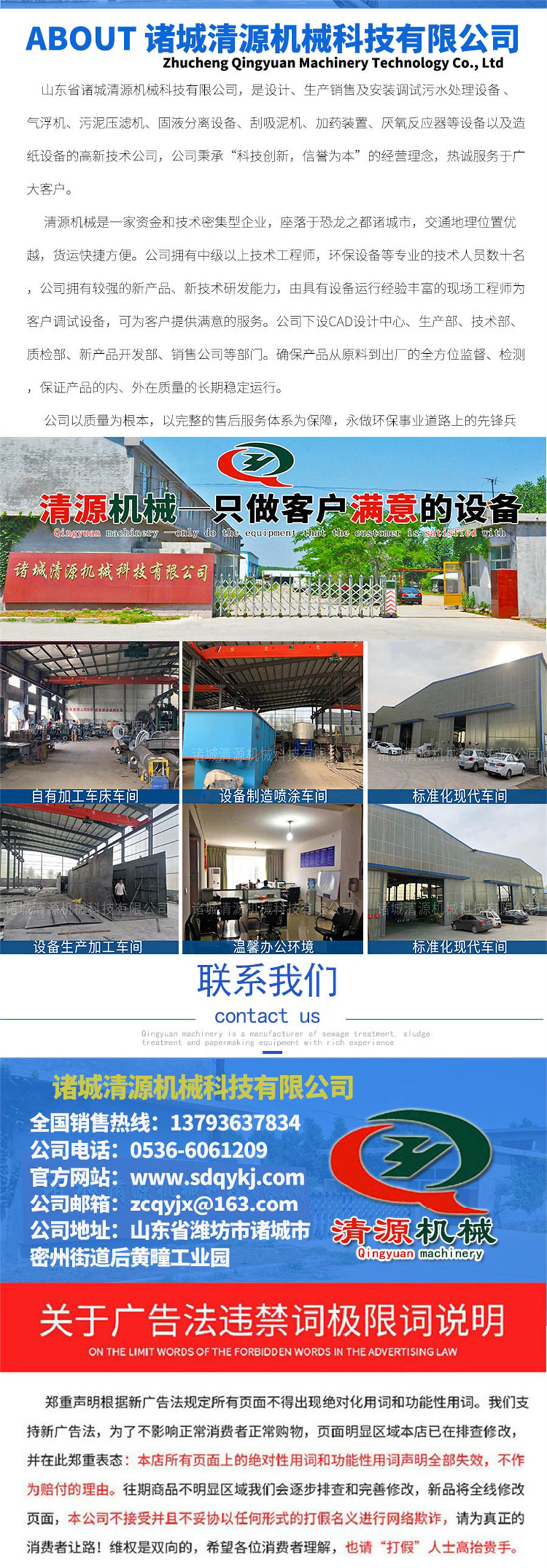此外,我公司還生產(chǎn)豬場廢水處理設(shè)備、氣浮機(jī)、污泥壓濾機(jī)、固液分離設(shè)備、刮吸泥機(jī)、造紙設(shè)備等其他設(shè)備。歡迎來電咨詢!