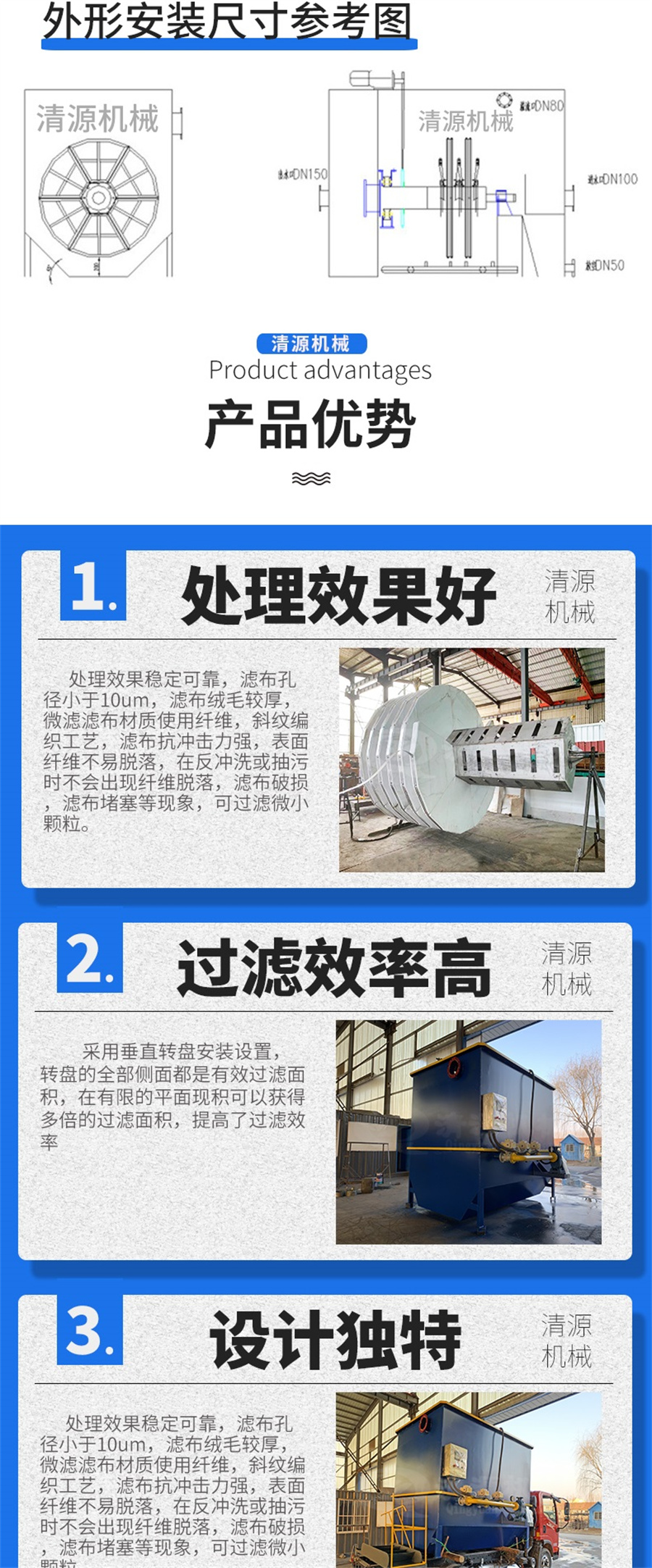 諸城清源機械科技有限公司纖維轉盤過濾器特點: